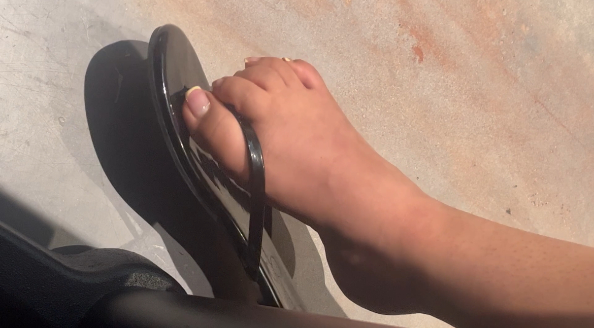 I invited the Latina girl from the library (see clip 002) to study with me, and she said yes! We met up and I noticed her wearing similar (if not the same) sandals / flip flops. She wasn’t doing any shoeplay at first, but then I noticed as I was looking down at my phone that she started sliding her feet around and slipping her shoes off. This video has dangling, cross ankle, shoe sliding, almost everything. Definitely a must watch!