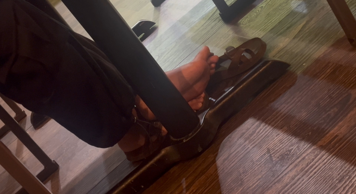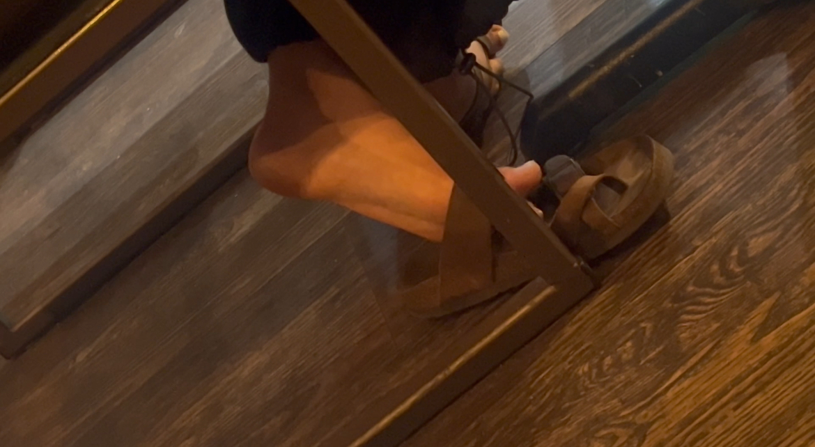 This middle eastern girl was doing some crazy shoeplay in birkenstocks while studying. She constantly crosses her ankles and lets her shoes fall. Dangling them off as well and flexing. She eventually noticed me constantly watching her shoeplay and started teasing, purposely taking them off more, and even flinging her shoe over towards me! This one is a must watch