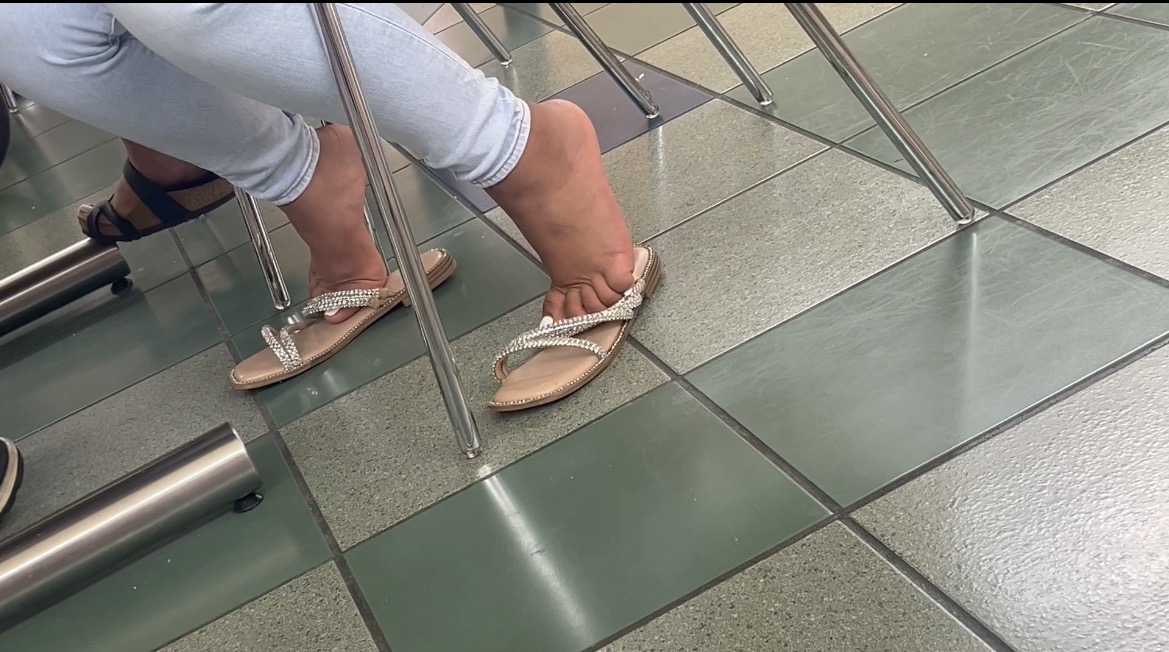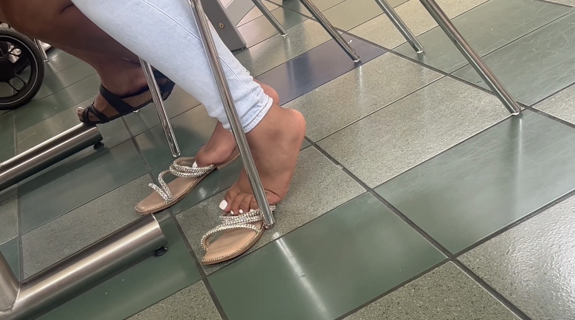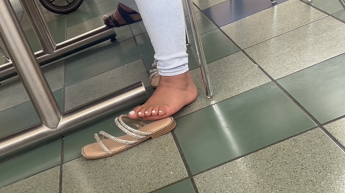 This latina does dipping in her sparkling sandals, constantly sliding them off and dangling them as well.